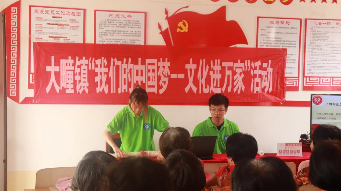 在大泥沟村,志愿者们对常用的应急救护方法进行了介绍和现场展示,重点讲解了包扎、止血、心肺复苏等操作要点,并从生活中常见的传染病出发,着重介绍了肺结核和艾滋病的传播途径、相关症状及预防措施等。活动结束后,志愿者们还向村民们发放疾病预防宣传手册。