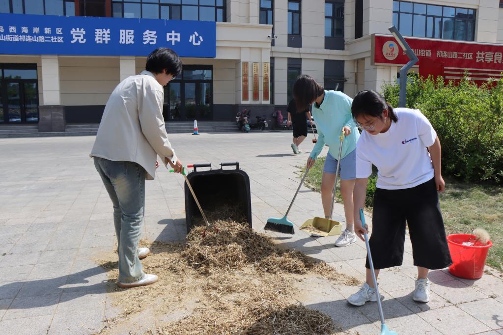 活动中,同学们分工协作、干劲十足。他们手持清洁工具,认真清扫广场道路落叶,耐心清理楼梯间杂物,合力铲除墙面小广告,并细心擦拭公共设施。在劳动间隙,同学们还主动向居民宣讲垃圾分类知识,倡导绿色生活理念,号召更多居民参与到社区共建中来。
