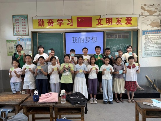 知识之外,支教团队更关注孩子们的情感成长与价值引导。“我的梦想”主题课堂上,孩子们依次登台分享自己的理想,“我想当医生治病救人”“我想做画家画很多美丽的东西”—这些童真的愿望,如同一颗颗闪光的种子,正在慢慢萌芽。在手工折纸课堂中,志愿者们指导孩子们折出纸鹤、爱心、纸船,那一张张稚嫩的脸庞上写满了专注与成就感,教室里洋溢着欢乐与童真的光芒。