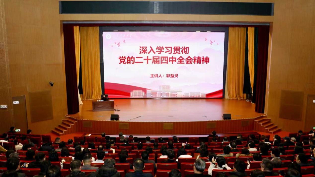 郭益灵围绕党的二十届四中全会整体情况、深刻领会“十五五”时期经济社会发展的指导方针和主要目标等方面作了系统而深入的阐释。郭益灵指出,党的二十届四中全会是在我国即将胜利完成“十四五”主要目标任务,进入基本实现社会主义现代化夯实基础、全面发力的关键时期召开的一次重要会议,要将学习贯彻全会精神与落实立德树人根本任务、服务国家战略需求、学校事业高质量发展紧密结合起来,一体推进。要在变化与发展中始终锚定前进目标、保持战略定力,奋力书写学校“十五五”发展的新篇章。