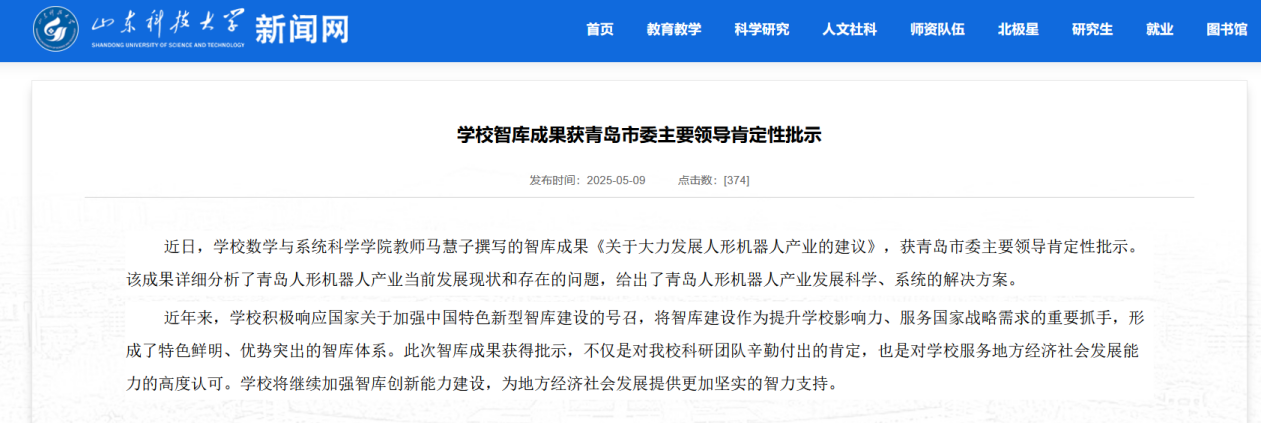 持续强化智库功能建设,依托青岛社科研究智库培育基地(数字经济与绿色低碳高质量发展智库培育基地),构建“问题导向—研究支撑—成果转化—决策服务”全链条工作体系,智库成果频获有关部门采纳与领导批示,彰显h视频